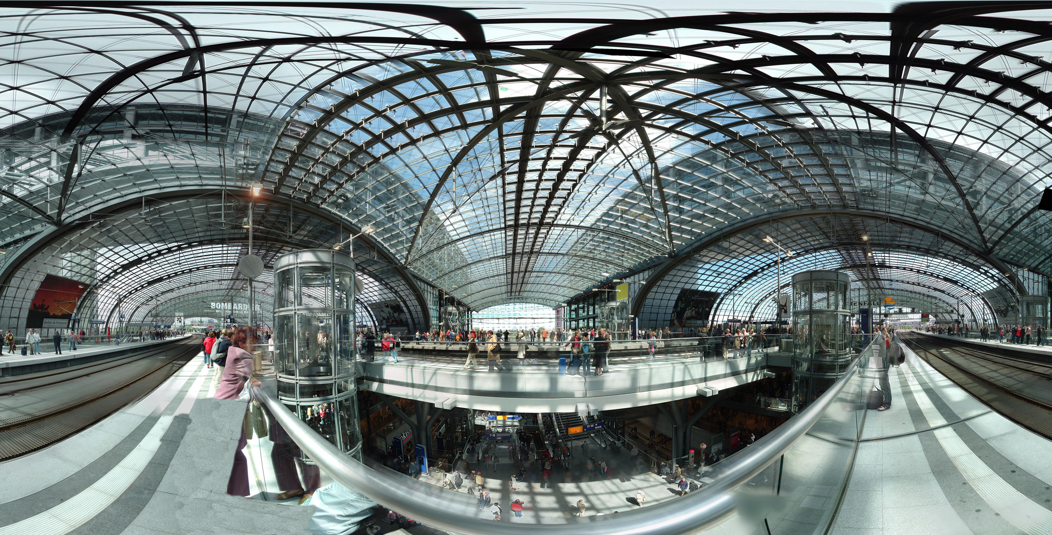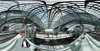 | current | 08:10, 31 May 2006 | ![]() | 3,500 × 1,781 (1.5 MB) | Asciimonster (talk | contribs) | {{Information |Description=180+ panorama view of the uppermost level of the Berlin Central Station (Berlin Hauptbahnhof). The Center of the picture is the view to the north. Left on the picture (west view) you see the track to Zoologischer Garten. On the |