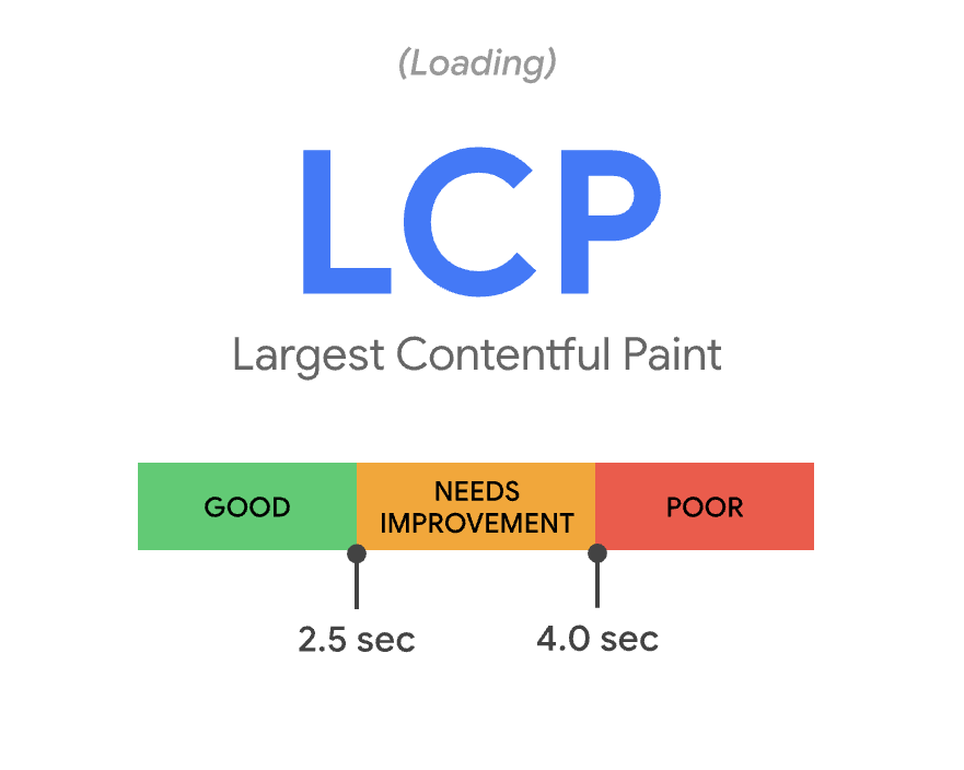 Largest Contentful Paint (LCP) measures perceived page load speed. Strive for <=2.5s.