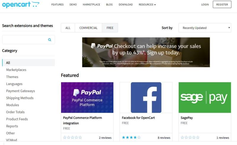 Currently, at the time of this writing, when searching the website for OpenCart on their extensions page, there were over total 13,000 extensions and a large portions of these are free.