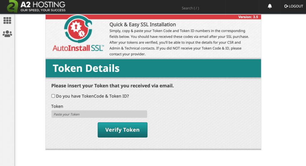 If you’re a cPanel user, you can log into your account and launch the AutoInstall SSL tool. Next, you can paste your SSL Token into the field and click on Verify token: