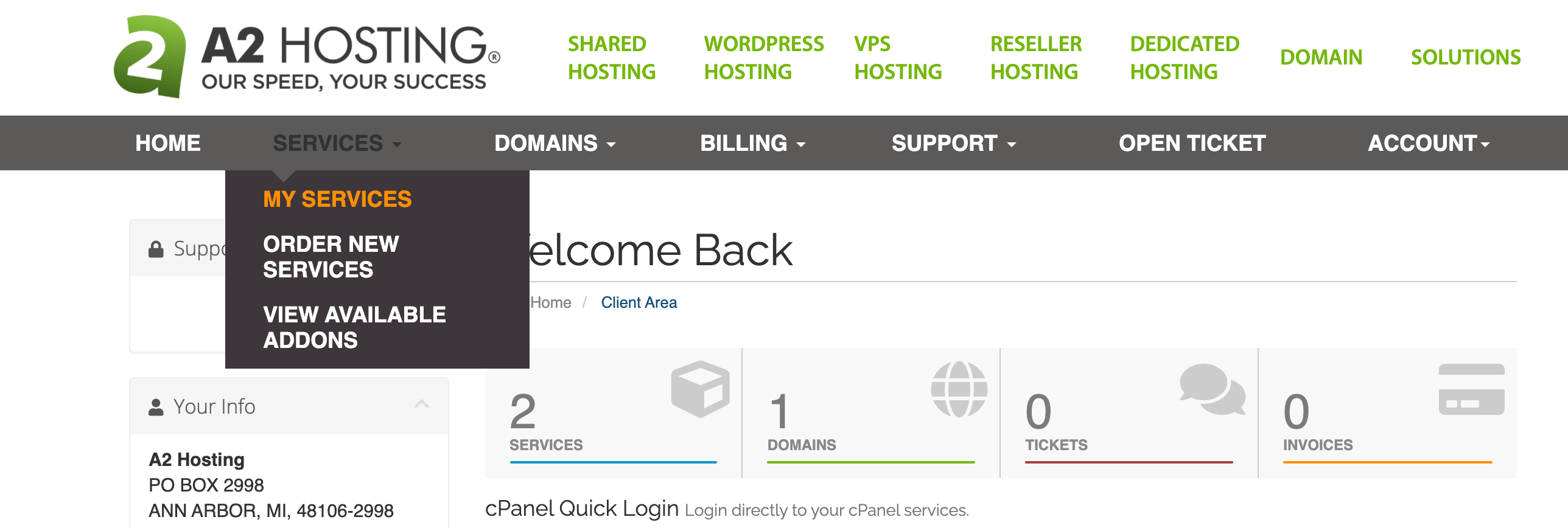 Alternatively, if you manage your account using the Plesk control panel, you can log into the Hosting.com Customer Portal and navigate to Services > My Services: