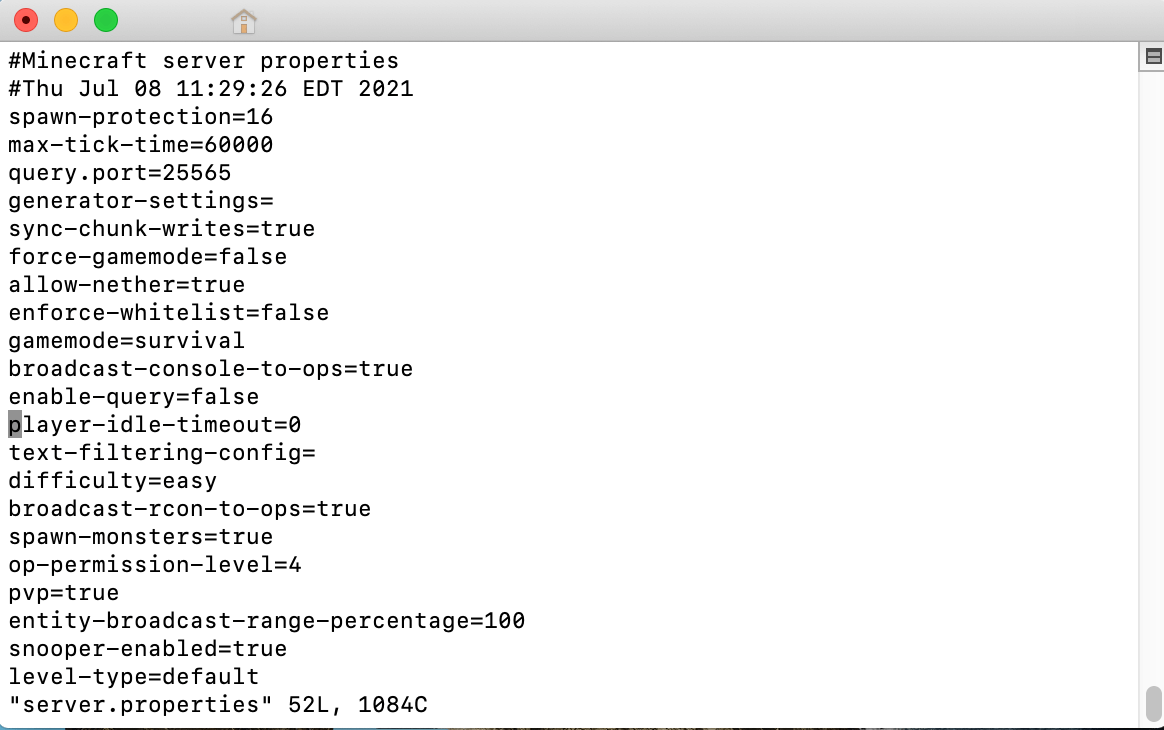 Then hit Enter. The terminal will now display the current configuration for your Minecraft server: