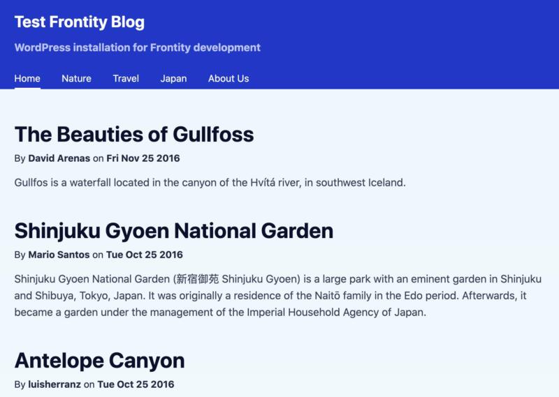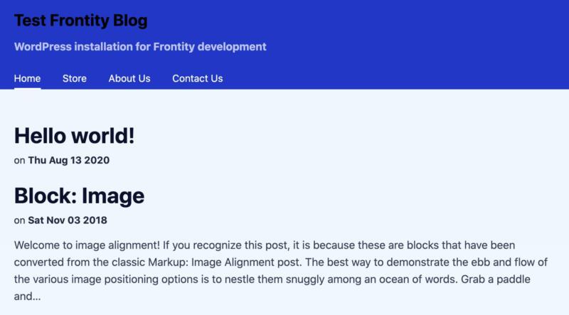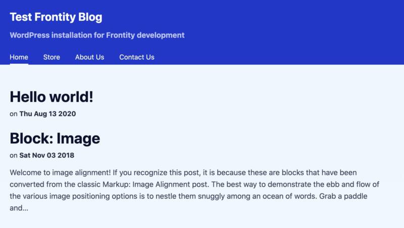 Save your changes, and refresh the Frontity tab in your web browser. This page should update to display content pulled directly from your own blog.