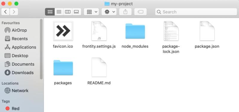 After a few moments, you should see a Frontity project created message. Frontity has now created a directory on your local machine, with the project name you specified. By default, Frontity projects are stored in your users directory: