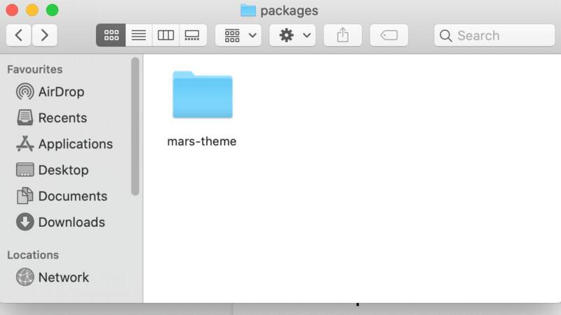 To make these customizations, you’ll need to edit the contents of your project’s packages/theme-name folder. For example, if you’re using the Mars theme, then the packages folder contains a mars-theme directory: