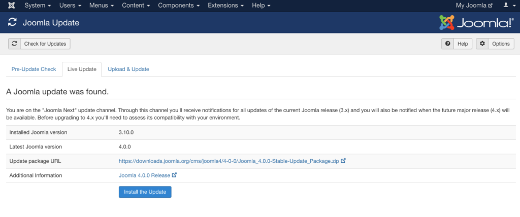 Joomla allows an easy and safe update to its latest version, Joomla 4. Through Joomla! Update Component and its many options, you can update your site in just a few clicks.