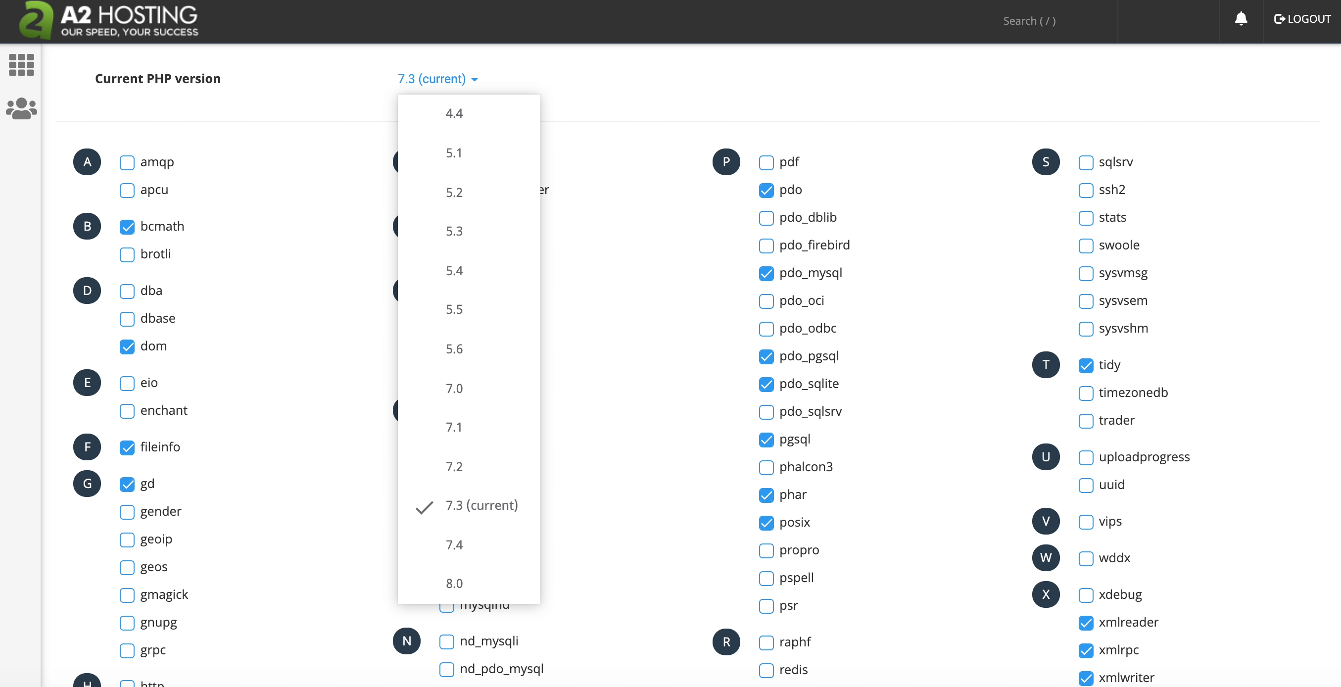 Then, open the Current PHP dropdown and choose a version of PHP from the list: