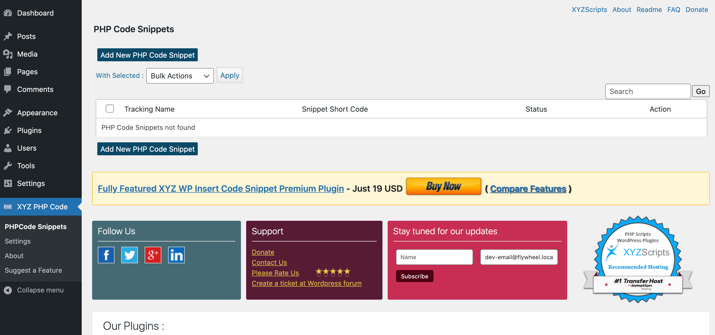 You can now add this PHP snippet to any page or post, using a shortcode. To access this shortcode, head to XYZ PHP Code > PHPCode Snippets. You can then find the snippet in question and copy its corresponding shortcode:
