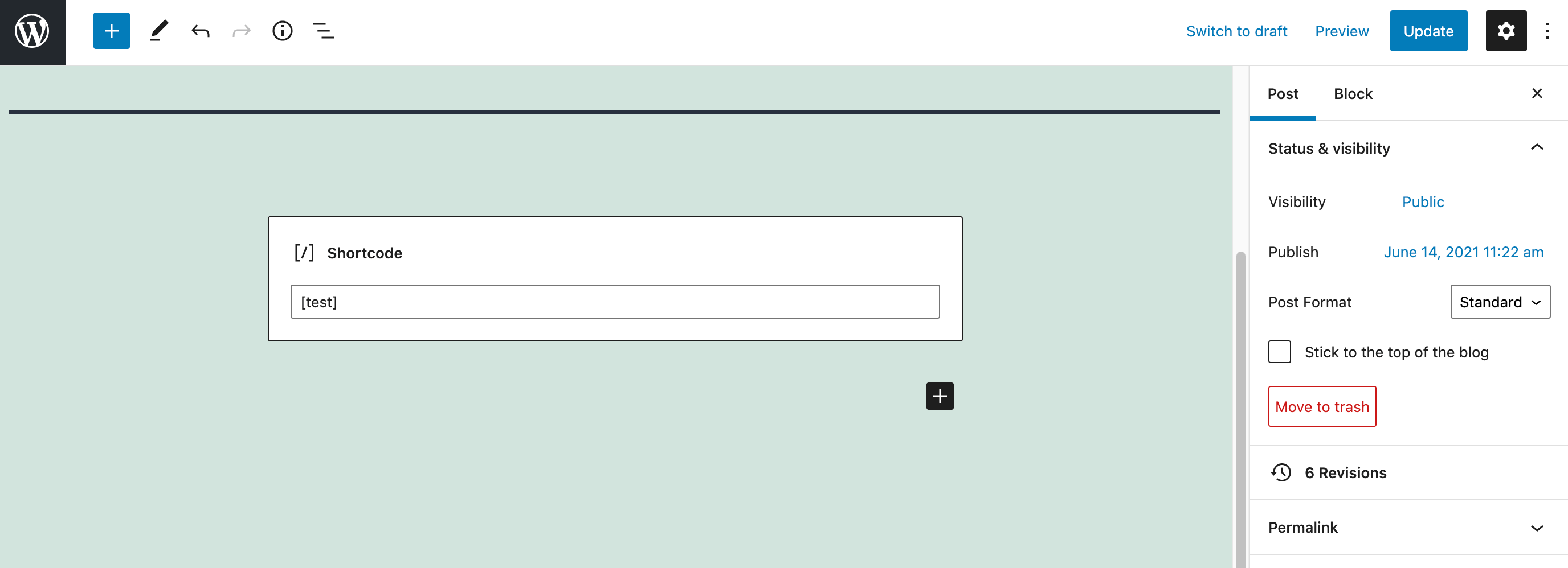 Simply paste the shortcode into this block and save your changes. This custom PHP will now be installed on this specific page or post.