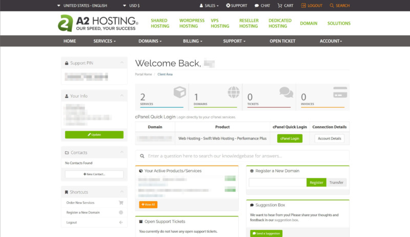 If you're eager to get your hands on PHP 8, either for testing or for a live environment, Hosting.com makes it easy. First, you'll need to access your cPanel. To do so, log into your Hosting.com account. This admin area enables you to manage everything related to your domains and websites: