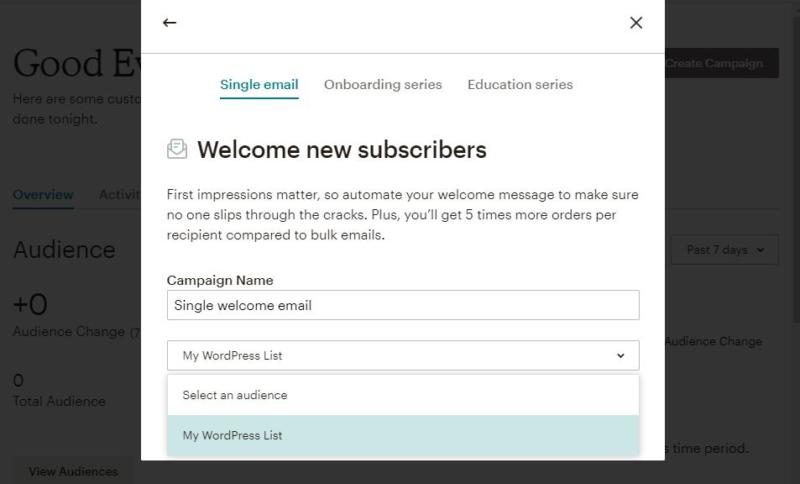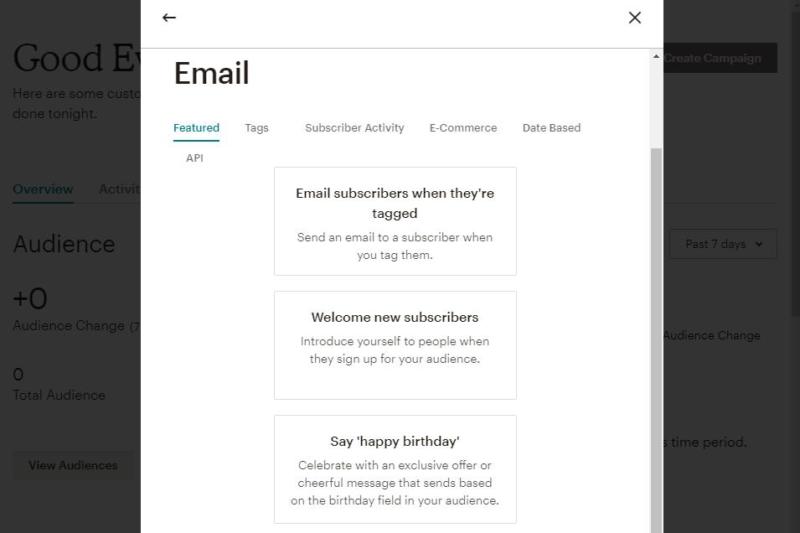 We're going to keep things simple, and select the Welcome email option, in order to demonstrate how automation works.