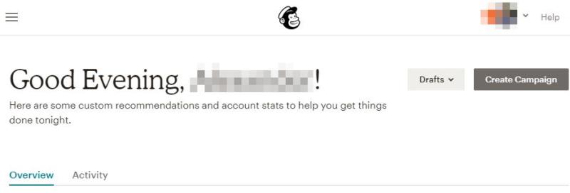 Once you have a MailChimp account, you can access your dashboard. It includes an option to create a new email campaign right at the top: