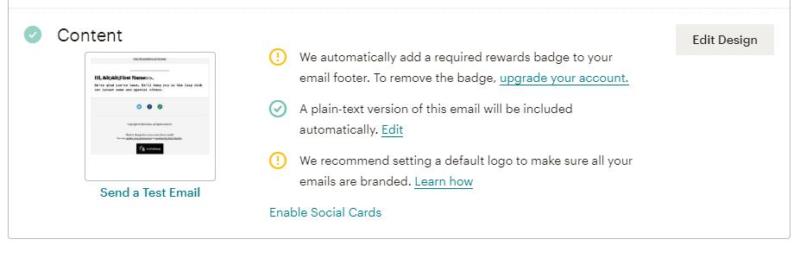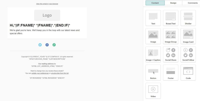 This is where the magic really happens. MailChimp will set you up with a welcome email template to help you hit the ground running. However, you can edit any aspect of its design and content to suit your needs:
