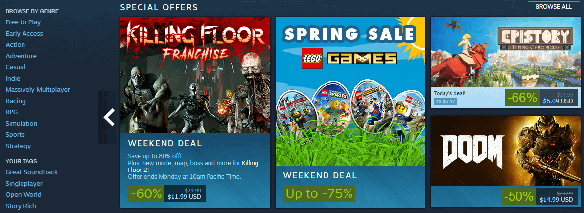 Fortunately, websites don't need to be boring or look bare to be fast. Check out the Steam homepage, for instance: