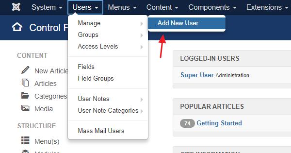 To add a new user, simply navigate to Users > Manage > Add New User within your administrator panel: