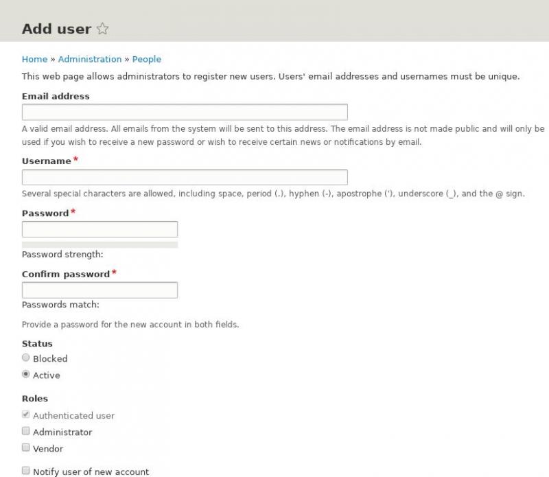 Once you're in the admin panel, navigate to People > List, and click the Add user link: