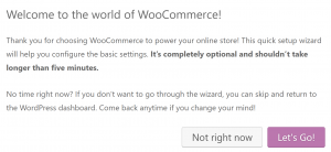 As soon as you hit the activate link, WooCommerce will send you into its setup wizard. You can always configure your store manually, but we recommend giving the wizard a go if it's your first time using the platform. Let's check it out together by clicking on Let's Go: