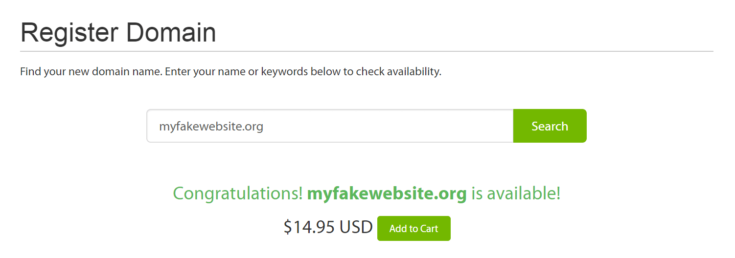 You can type in the domain you want to perform a search. The registrar will then let you know if it’s available or taken: