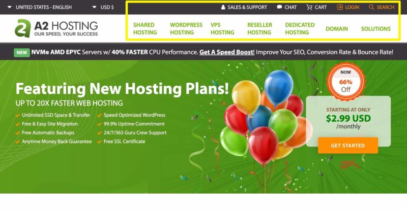 Generally speaking, your website should have at least one menu. For example, on our site, we have a header menu that includes access to support, our customer login page, and information about our most popular services: