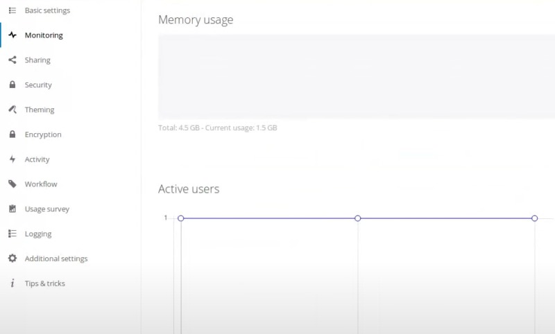 If you click on Monitoring, for example, you'll see a full breakdown of server usage, active users, and more: