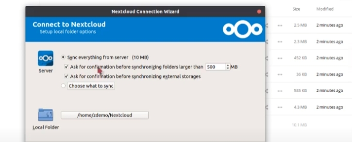 You can designate what folder NextCloud will sync those files to and once you do, you're in business.