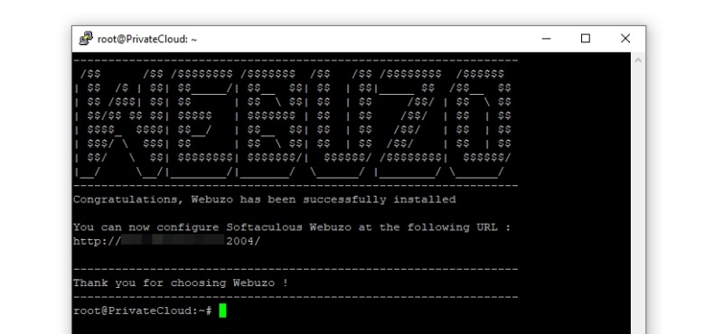 We'll show you how that interface looks in a minute after we install Webuzo. To do so, return to the SSH terminal window you opened before and type the following commands: