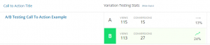 WordPress Calls to Action is a nifty plugin that enables you to create Calls To Action (CTAs) on your site. However, what we’re interested in is its A/B testing capabilities. After creating a CTA, you’ll be given the opportunity to design up to two additional variations of it, and track their performance through impressions, conversions, and click-through statistics: