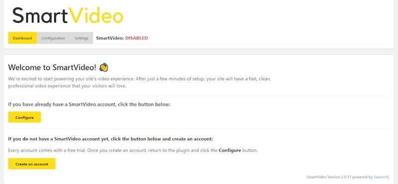 Now that your Swarmify account is up and running, the next step is to install and activate the SmartVideo plugin: