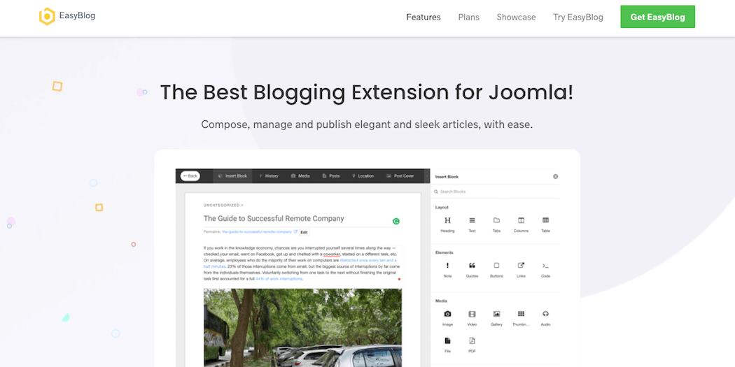 EasyBlog: A tool for creating blog posts in Joomla, along with an easy-to-use content builder.