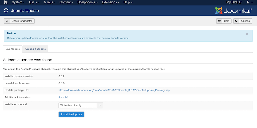 The team behind the Joomla CMS is constantly working on updates to fix security bugs and improve performance. Therefore, it’s important to keep your site's version of Joomla up to date, to take advantage of any security fixes and make sure all of its features are functioning as well as they can be.