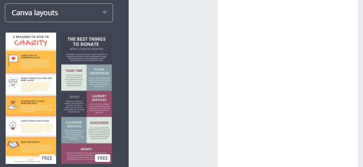 You'll find a good range of infographic designs with either one or two-column layouts, so you're bound to find one that works well with your content. It doesn't have to be a perfect fit, however – you can change the size, and we'll teach you how to customize elements too.
