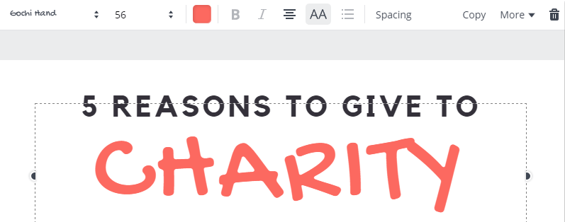This will enable you to delete the placeholder text and type anything you want, as well as to format it or change the font. Now you need to do this for every section of your layout, using the content you prepared in step one. Once you're done, your infographic should be almost ready.