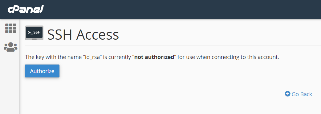 Once you've generated a new key, go back to the Manage SSH Keys interface, and click on the Manage link next to the new key. Next, click on the Authorize button to allow it: