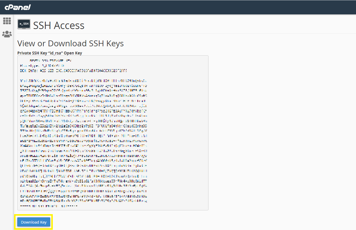 Go back and scroll down to Private Keys and click on View/Download. The next page should display your SSH key details. You can click on Download Key to save it somewhere safe to your computer: