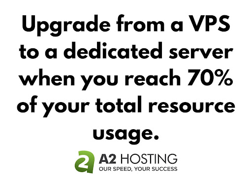 This is a frequently asked question and one that deserves answering. Typically, you want to upgrade from a VPS to a dedicated server when you’ve reached 70% of your total resource usage for RAM, disk space, CPU, and bandwidth combined. Why 70%? Because it’s better to be early than to be late. If you wait until your resources hit 100% total usage, you risk your server crashing or getting temporarily suspended until you upgrade. NOTE: We email you several notices warning you of resource uses once you get past 50% usage. We won’t suspend your account without warning and suggesting an upgrade.
