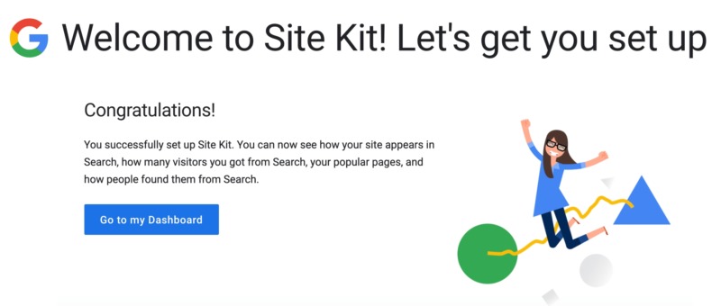 However, Site Kit does require you to integrate Search Console with your WordPress site. If you haven’t previously connected to the Search Console, you’ll be asked to complete this step now. After the Search Console integration, you can select Go to my Dashboard: