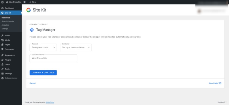 Similar to Optimize, you’ll still need to create and manage your tags in the external Tag Manager dashboard. However, Site Kit does streamline the process of adding Tag Manager to your website.