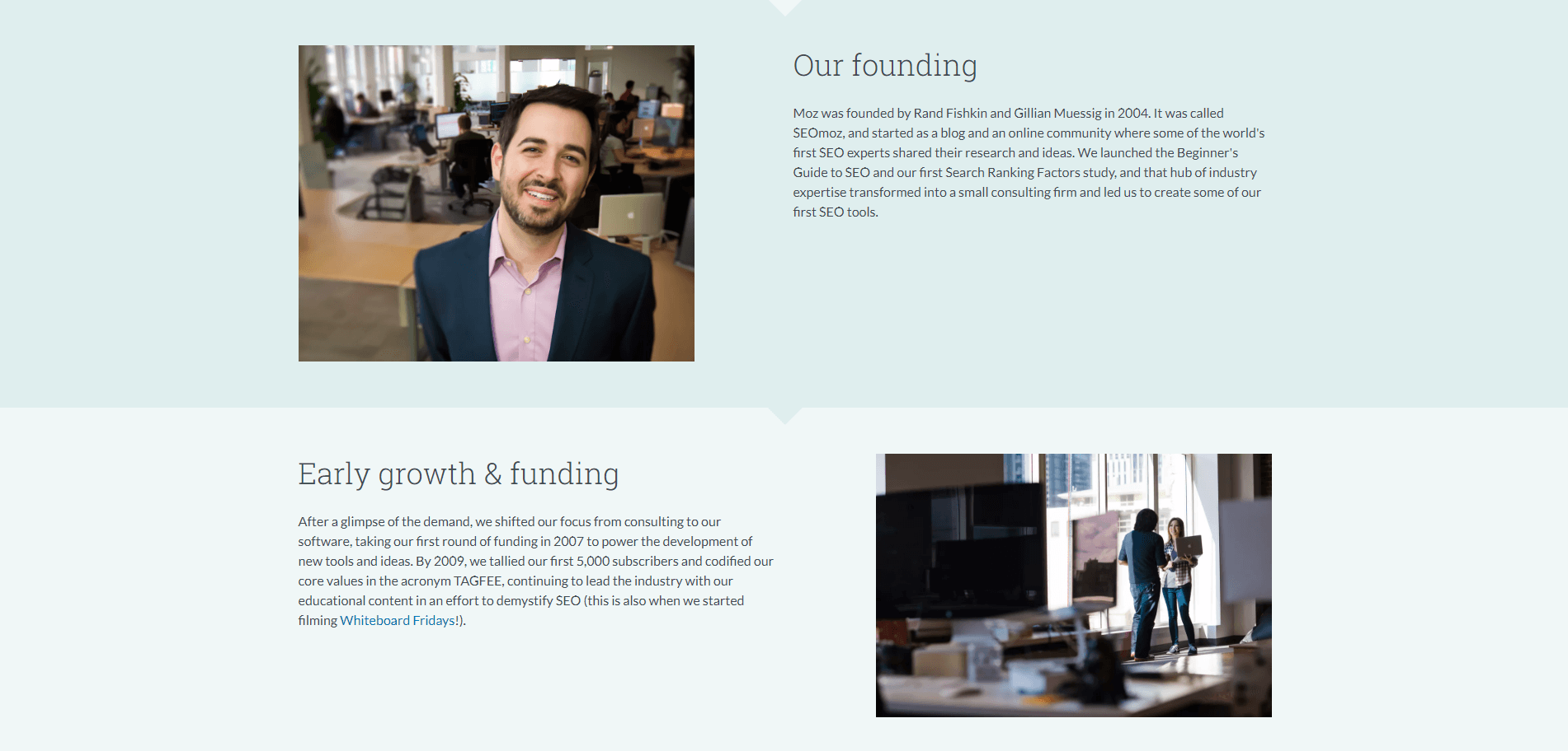 So instead of bombarding visitors with ten or more individual bios, highlight a few key leaders, and use a group photo for the rest of the staff. This way, everyone gets to feel included, and your About page still feels focused.