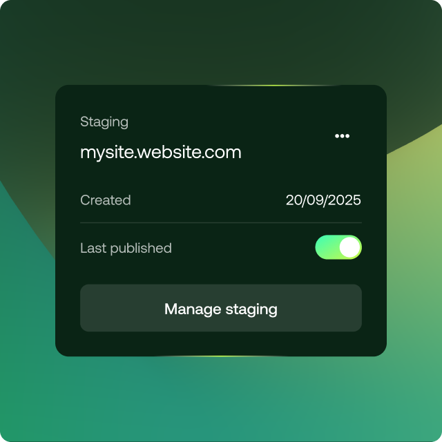 Get all the benefits of our optimized Hosting for WordPress, plus more hands-on management tools. With staging and backup features ready to use, it’s perfect for developers and pros who want more control.