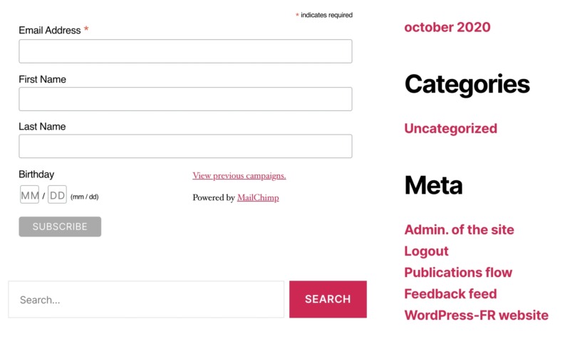The Mailchimp signup form will now appear across your website, as part of your theme’s sidebar.