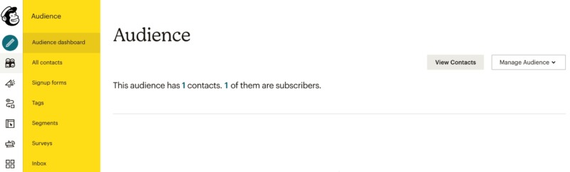 In Mailchimp’s left-hand menu, select the Audience icon. You can then select Audience dashboard.