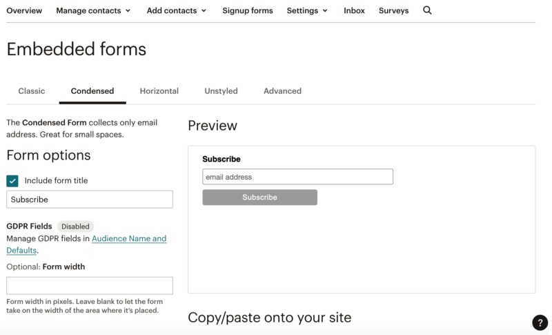 Mailchimp will generate an embed code automatically. When you’re happy with the signup form you’ve created, copy this code.