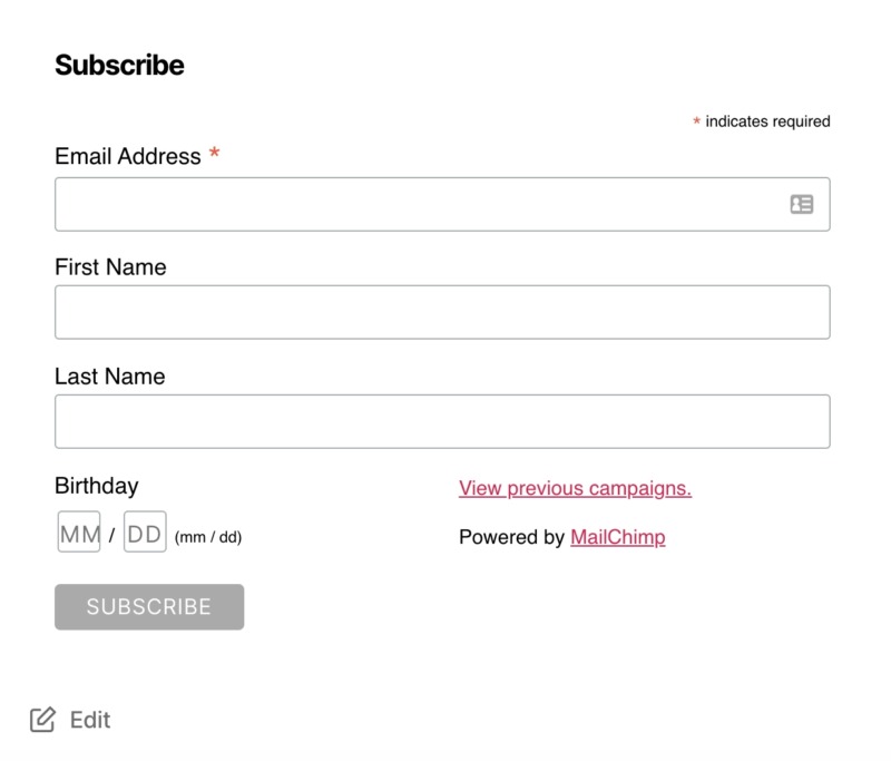 Once you publish your page or post, your Mailchimp signup form will appear on your WordPress website.
