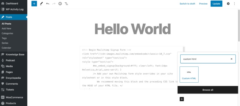 Step 7: Add Your Mailchimp Signup Form to WordPress