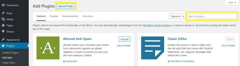 Fortunately, it's typically a smooth and quick process. First, you'll have to install the Disqus plugin. This can be done either by downloading it as a .zip file and uploading it on the Plugins > Add New page, or you can use WordPress's own plugin search feature to find it instead: