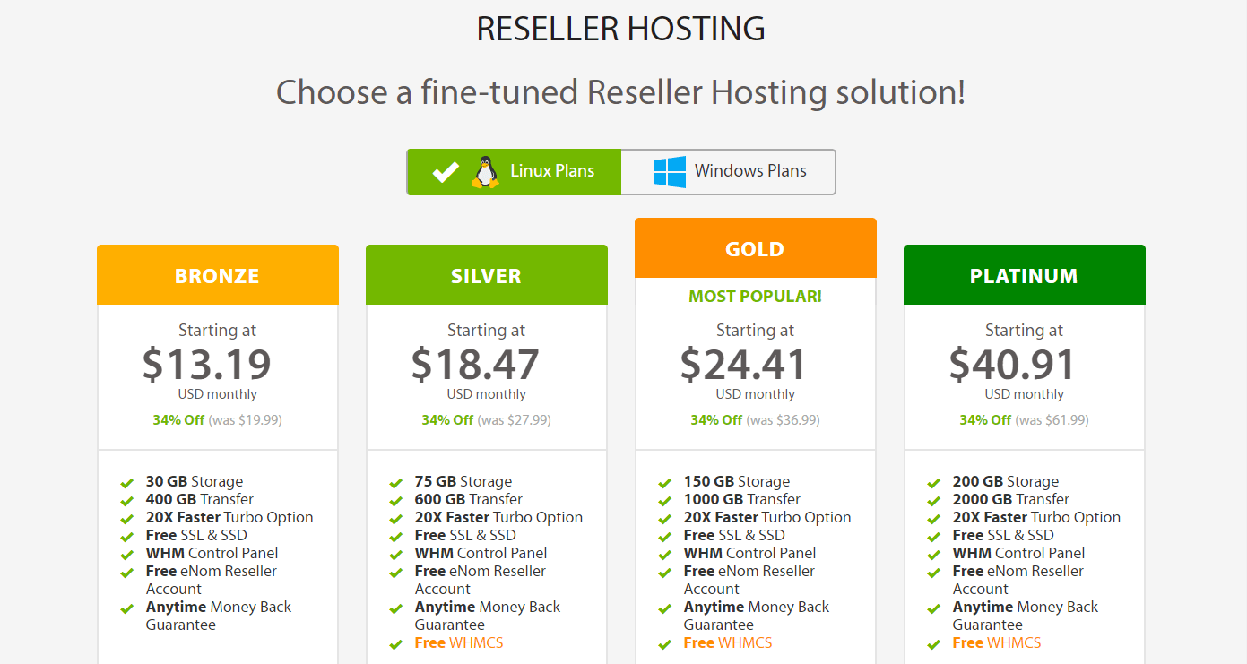 Your chosen provider will also need to offer bundled plans. These are hosting plans that can be used for a lot of different sites, so you can serve as many clients as possible: