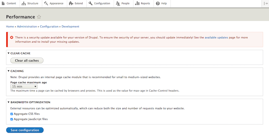 In Drupal, browser caching is a built-in tool that you can configure in your control panel by visiting Administration > Configuration > Development > Performance: