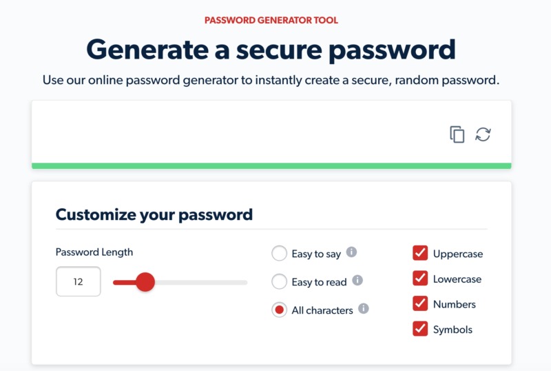 It's also wise to avoid using common phrases and words, especially words that you’re publicly associated with. To ensure you’re using a strong, random password, it may help to use a password generator such as LastPass: