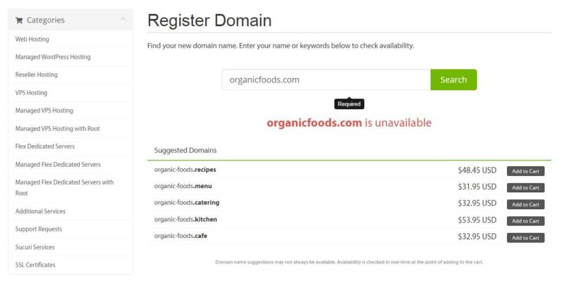Of course, it’s a good idea to take some time when picking your domain, and to choose carefully. After all, the right domain can help shape your brand and improve first impressions. A quick way to experiment and brainstorm ideas is to use a domain checker.