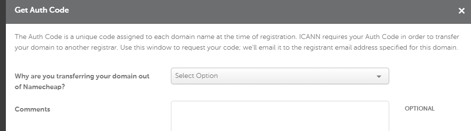 After disabling your domain lock, look for an option that will enable you to receive an authorization code. This code will be sent to the email associated with your domain, and your new platform will require it to authorize the transfer: